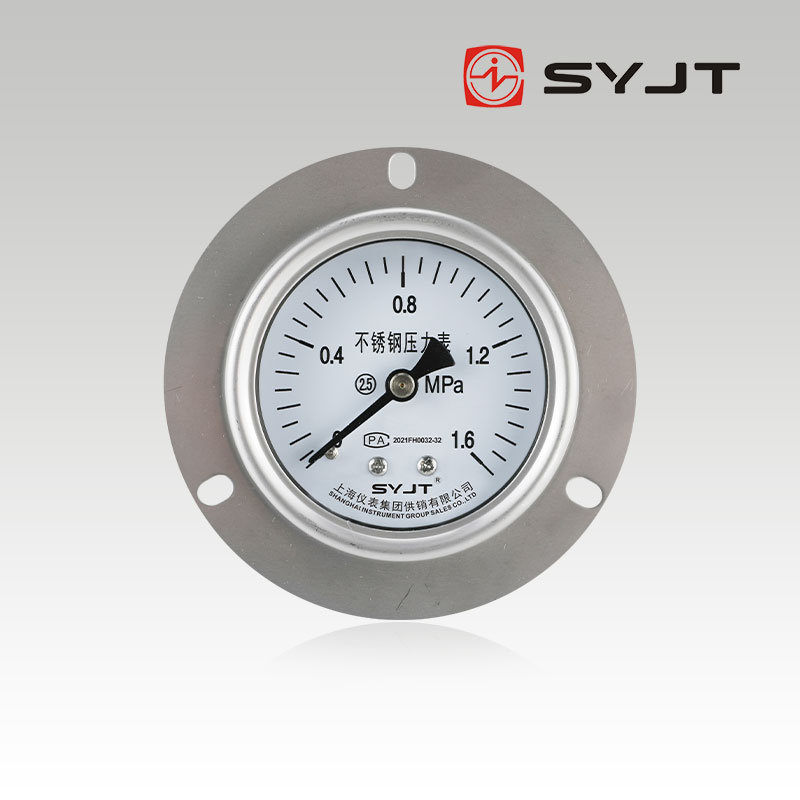 上仪集团Y-63BF轴向带边不锈钢压力表,不锈钢压力表广泛用于石油、化工、化纤、冶金、电站等工业部门中对耐腐、抗振有较高要求的工艺流程中测量各种流体介质的压力。
