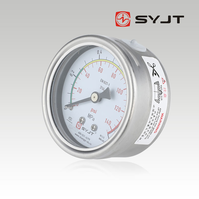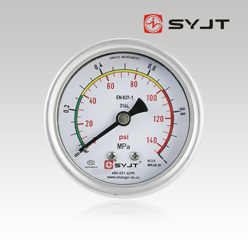 上仪集团Y-63BF轴向无边不锈钢压力表,不锈钢压力表广泛用于石油、化工、化纤、冶金、电站等工业部门中对耐腐、抗振有较高要求的工艺流程中测量各种流体介质的压力。