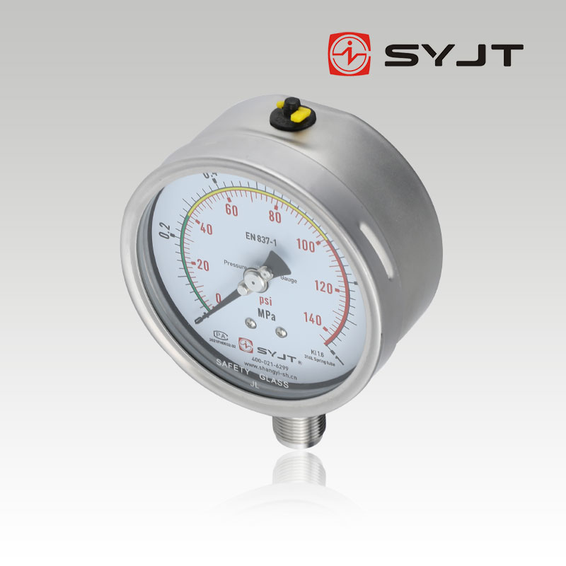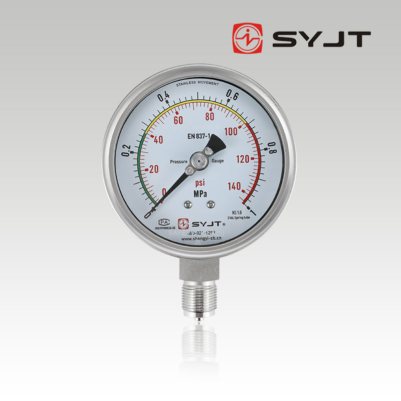 上仪集团Y-100BF三色双刻度不锈钢压力表,广泛用于石油、化工、化纤、冶金、电站等工业部门中对耐腐、抗振有较高要求的工艺流程中测量各种流体介质的压力。