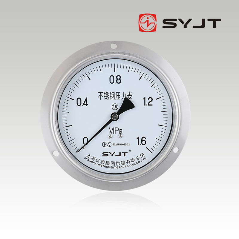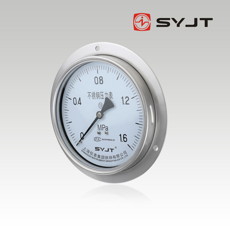 上仪集团Y-153BF轴向带边不锈钢压力表,不锈钢压力表广泛用于石油、化工、化纤、冶金、电站等工业部门中对耐腐、抗振有较高要求的工艺流程中测量各种流体介质的压力。