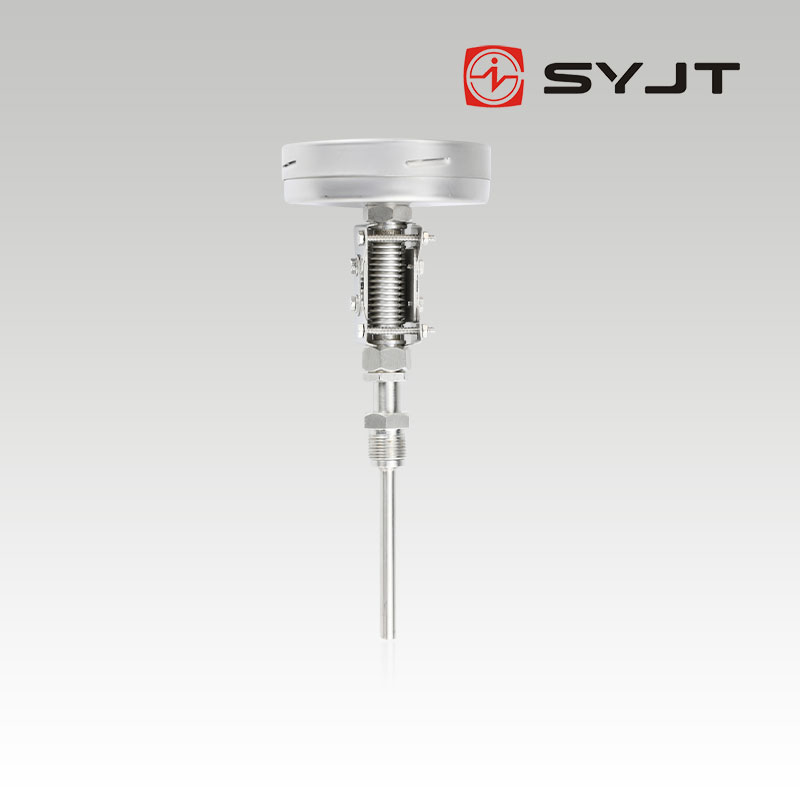 双金属温度计是利用绕制成螺旋管状的双金属片一端被固定,另一自由端与指针针连接,随着温度的变化而转动,并带动指针旋转指示温度的单针式指示温度计。