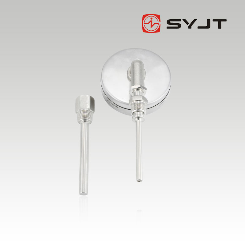双金属温度计是利用绕制成螺旋管状的双金属片一端被固定,另一自由端与指针针连接,随着温度的变化而转动,并带动指针旋转指示温度的单针式指示温度计。
