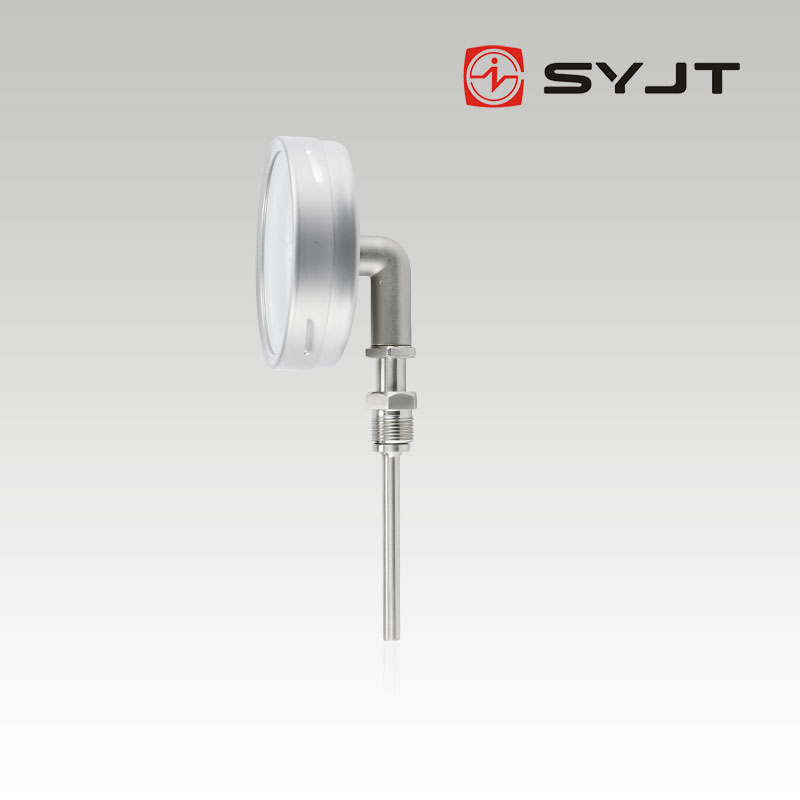 WSS不锈钢双金属温度计径向型,本厂生产的双金属温度计其保护管、节头、锁紧螺栓等均采用1Cr18Ni9Ti材料,表壳采用铝板拉伸成型经切削加工表面黑色电泳处理,表盖与表盒采用环型双层橡胶圈螺纹密封锁紧结构,故仪表整体防水防腐性能良好,径向型仪表采用弯管型结构,外型新颖、轻巧、美观与众不同。